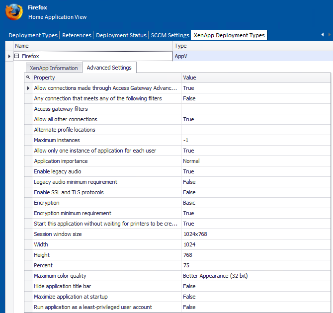 - Click the XenApp Deployment Data tab and open the Advanced Settings subtab.
